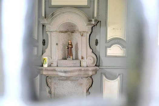Die Kirche war verschlossen. Durch ein Fenster war ein Blick in das Innere möglich.
