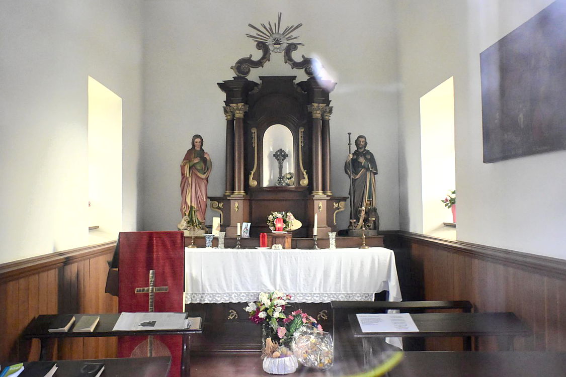 Die Kapelle war verschlossen. Durch ein Fenster war ein Blick in das Innere möglich.